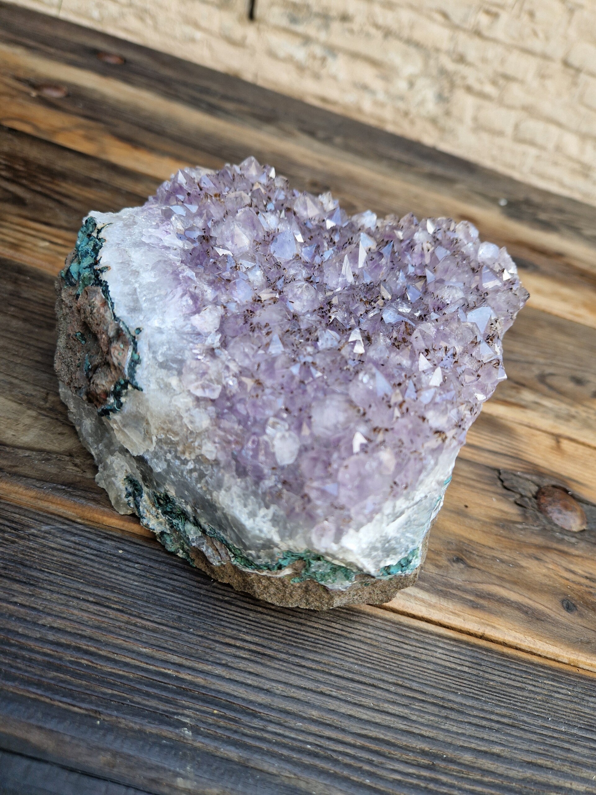Amethist is een paarse kwarts die van licht- tot donkerpaars voorkomt. De kristallen noemt men gekristalliseerd of druzy. Waarbij de kristallen op een nartuurlijke manier in een geometrisch vorm groeien en voor een prachtige schittering zorgen.
