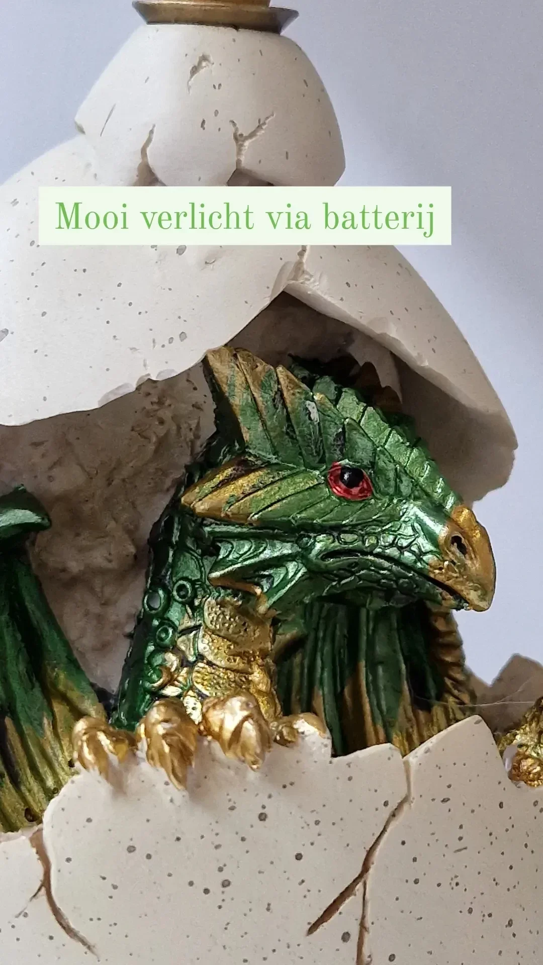 De draak is keramisch en metallic groen van kleur. Het ei heeft iets magisch en is niet alleen een mooi schouwspel voor kinderen maar ook voor volwassene.
