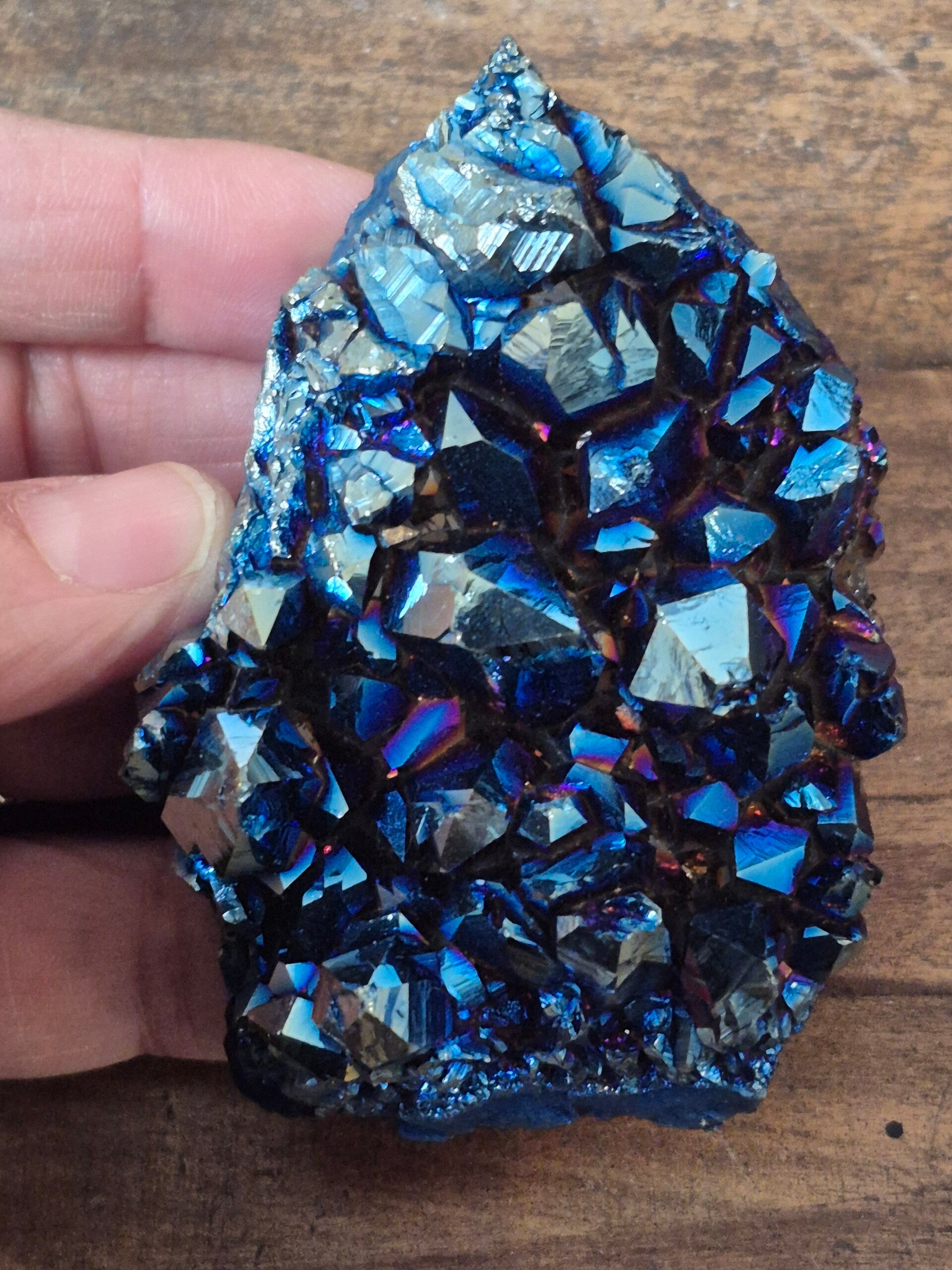Wouw wat een beauty en mooie felle kleur blauw en de kleuren van de regenboog.