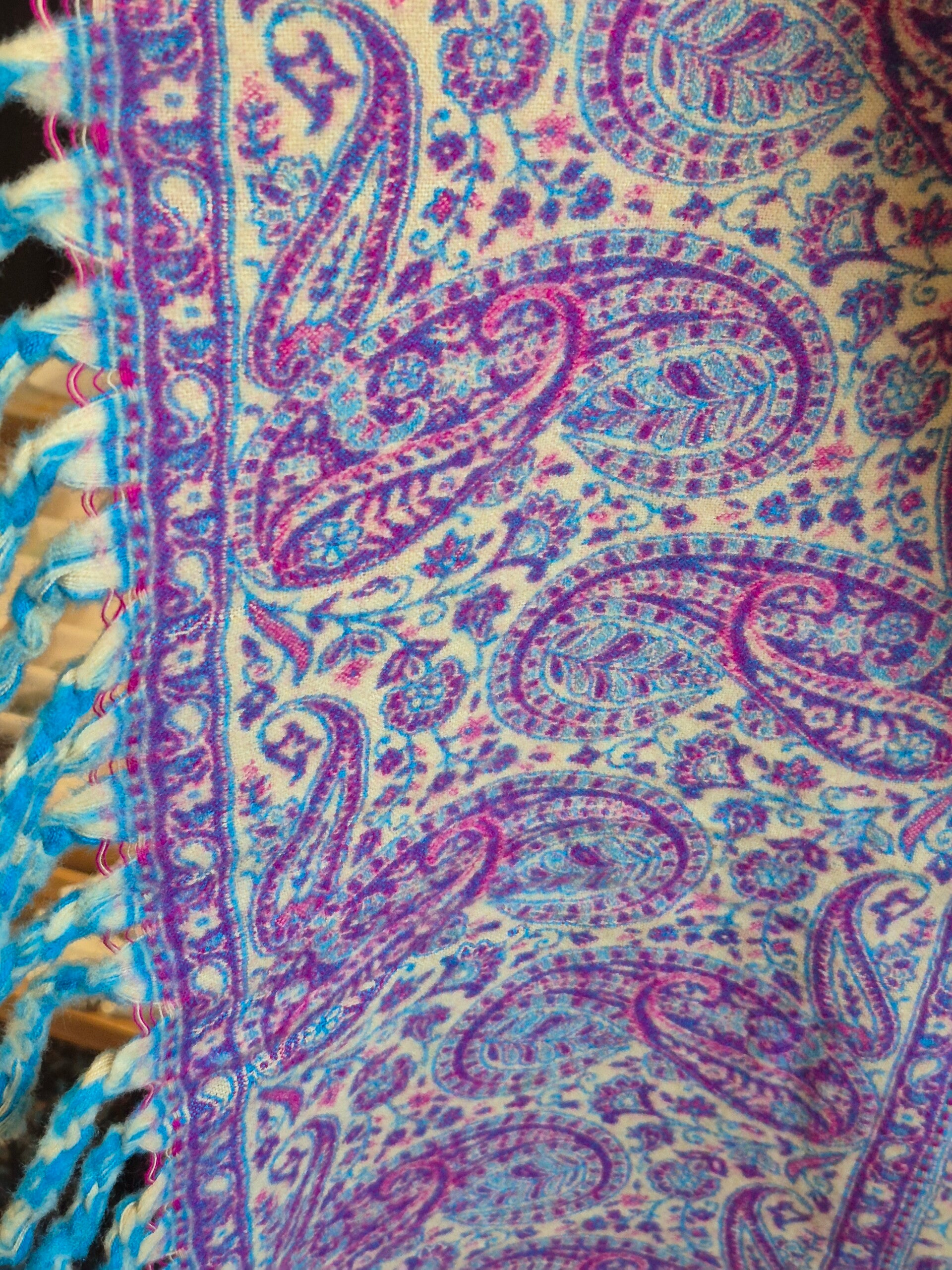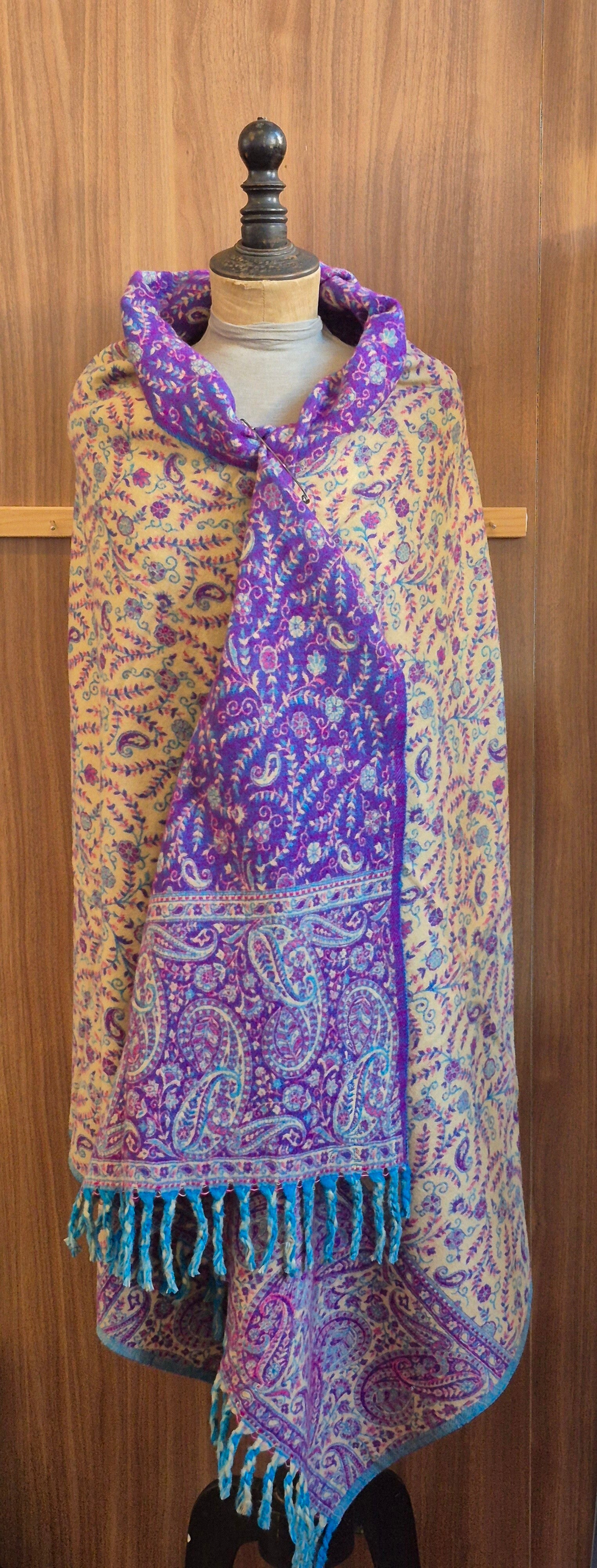 Tibetan Yakwool Omslagdoek/ Sjaal Paars Roze Ceme Turkoois