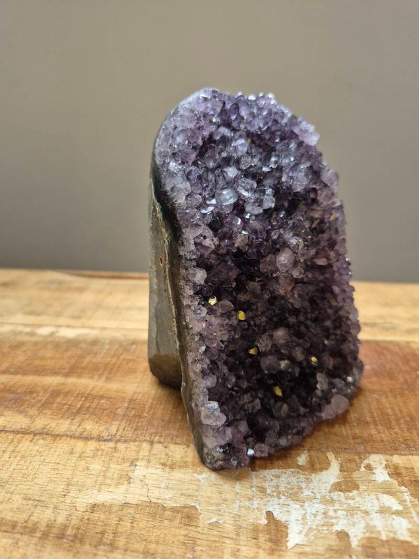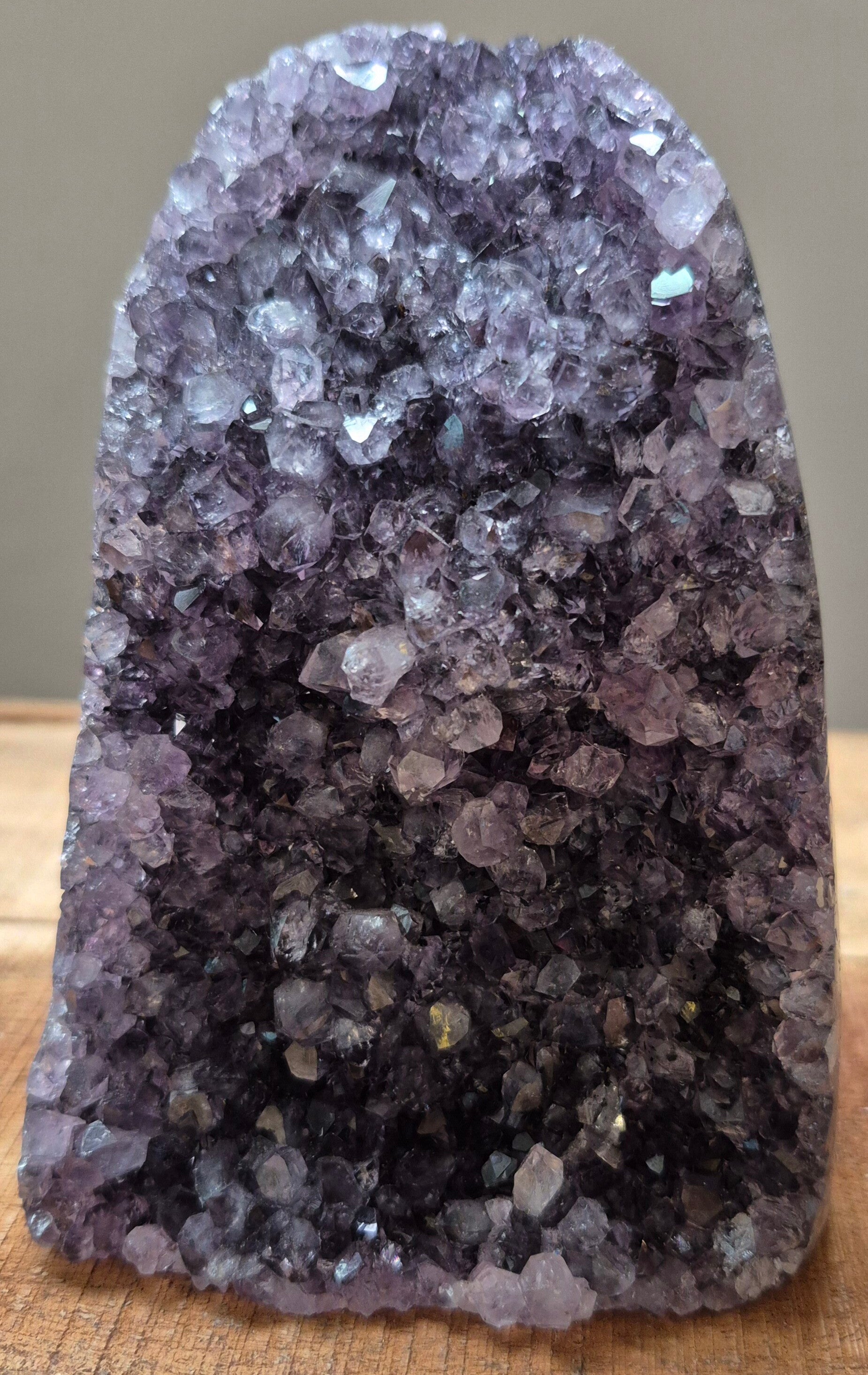 Amethist is een paarse kwarts die van licht- tot donkerpaars voorkomt. De kristallen noemt men gekristalliseerd of druzy. Waarbij de kristallen op een nartuurlijke manier in een geometrisch vorm groeien en voor een prachtige schittering zorgen.