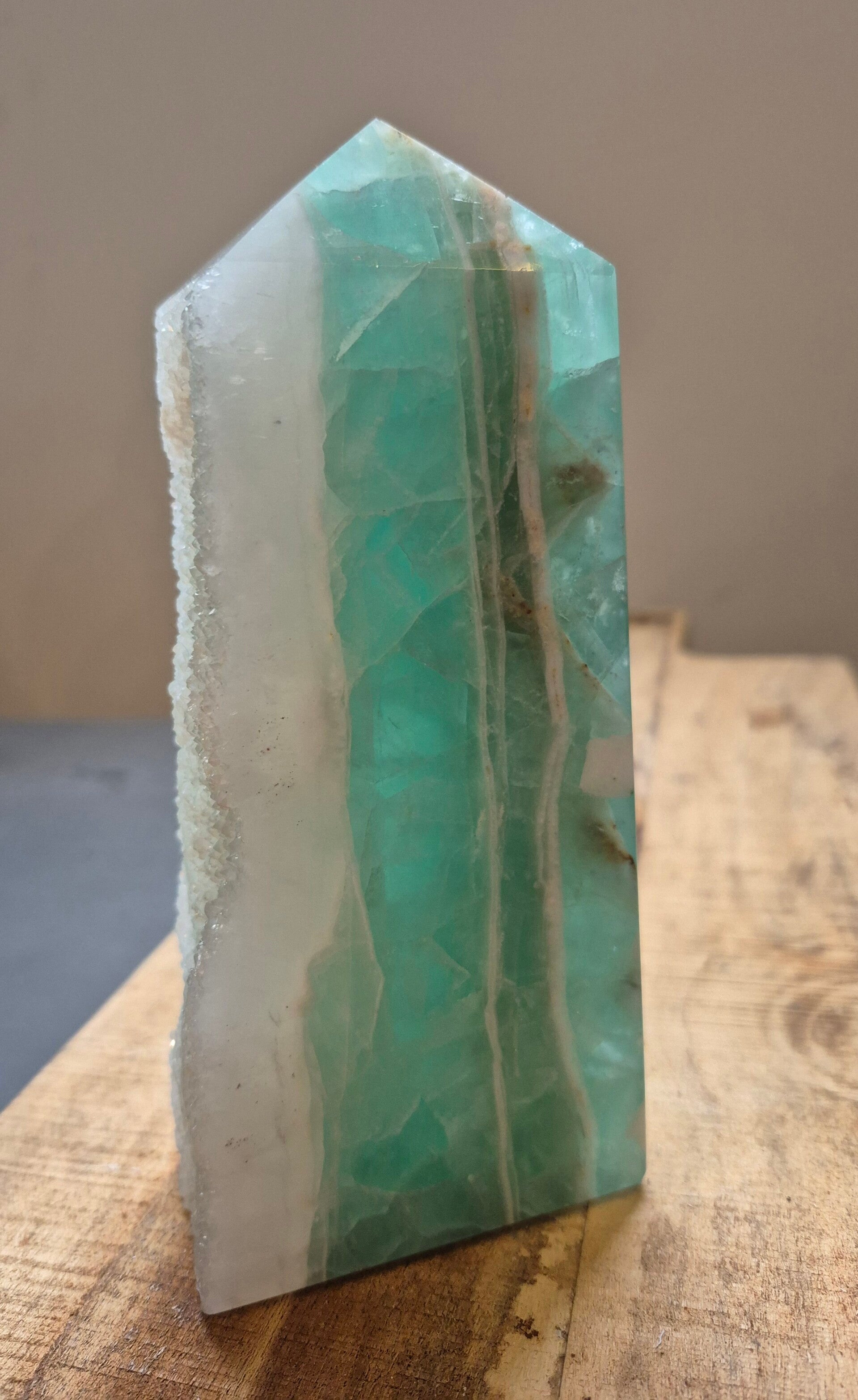 Mooi gevormde punten fluoriet in haast doorschijnend groen.
