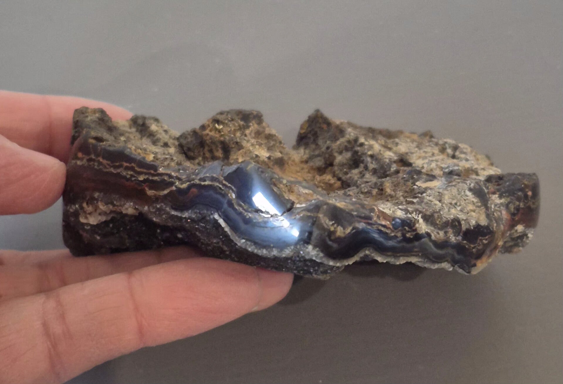 Agaat in een stalen frame.