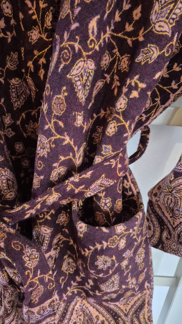Prachtige Kimono in bruintinten met zachtpaars. die soepel valt, zacht is en je heerlijk warm houdt.