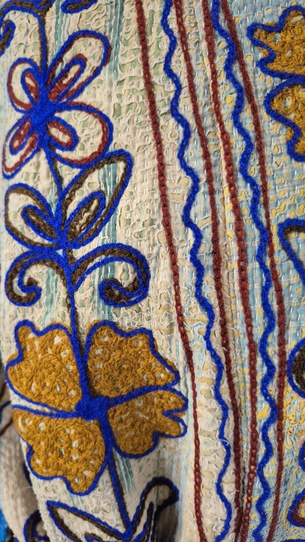 Mijn favoriete jassen zijn de Kanta met Suzani (geborduurde) motieven. Vaak in prachtige bloemen of fantasie motieven. Waarvan de mooie kleuren op elkaar afgestemd zijn als een waar kunstpalet!