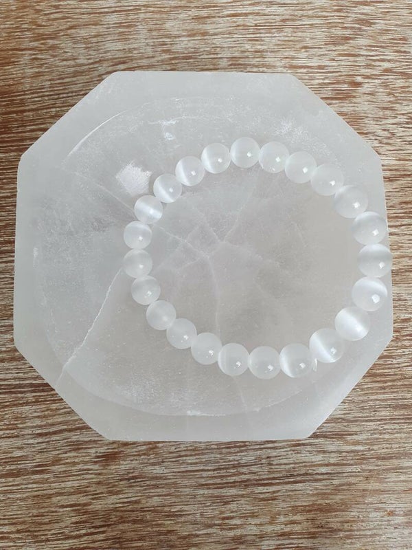 De steen bevordert je intuitïe en mediamieke gaven en het contact met de Engelen. Persoonlijk is het mijn favoriete steen. Seleniet is een energie die je in staat stelt om snel hoog te reiken, als het gaat om contact met het hogere.
