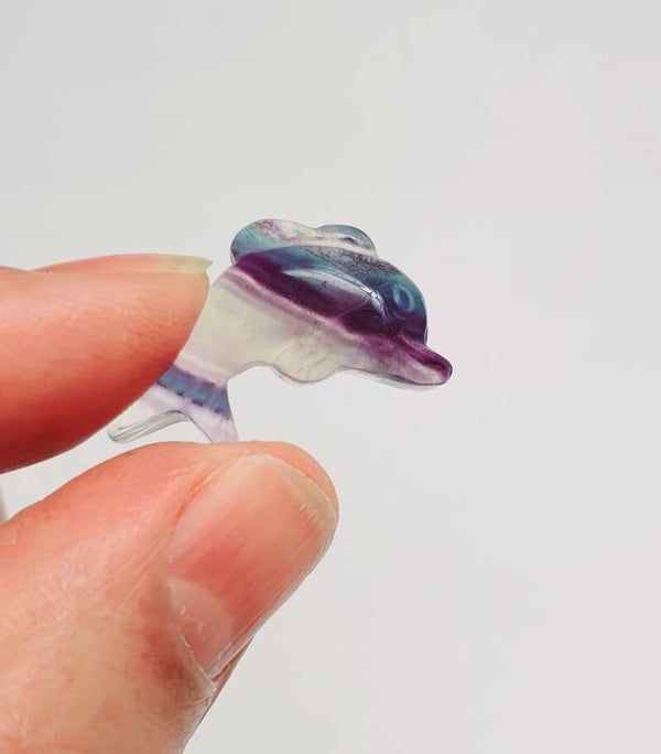 Dit dolfijntje heeft verschillende tinten van paars tot licht geel naar doorzichtig.